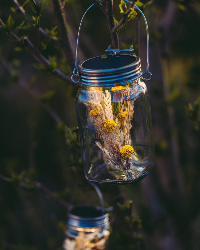 Add a little bit of ambiance to your garden with this easy DIY project. You can use a simple mason jar and some wire to create a hanging lantern.