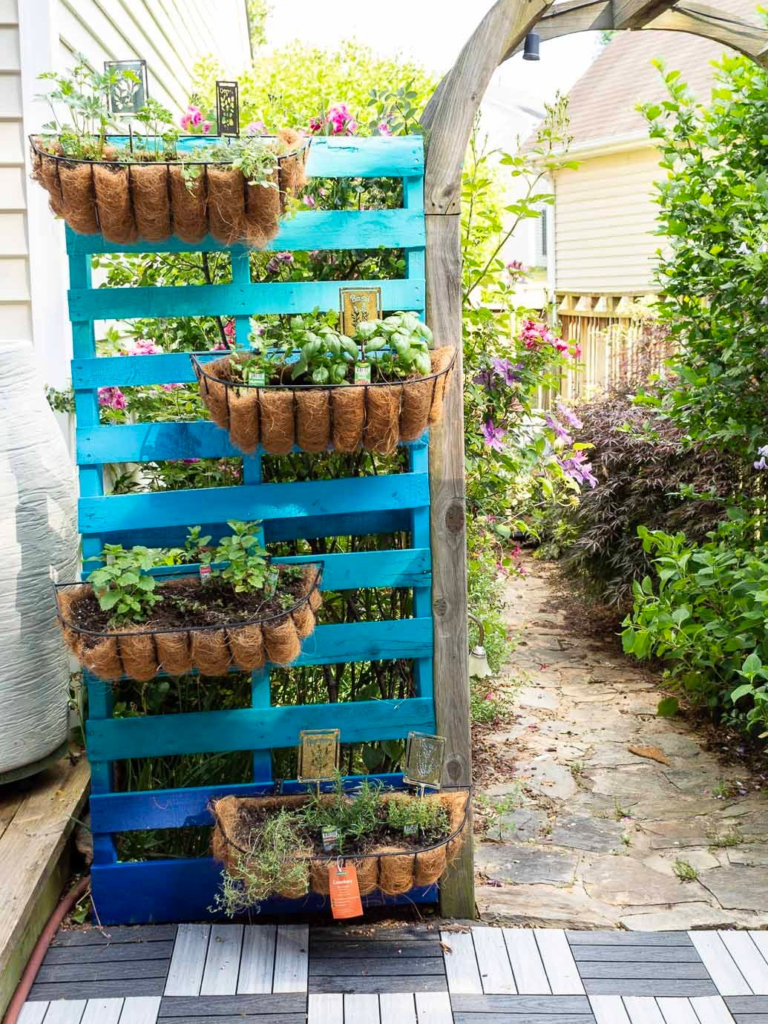 This herb garden idea is perfect for small spaces and can be easily moved if you need to.