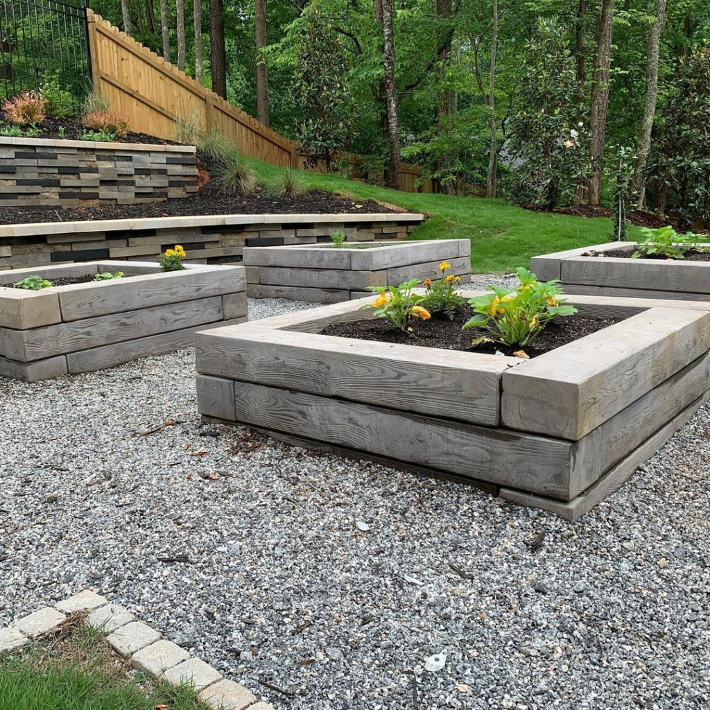 Rustic wooden raised beds