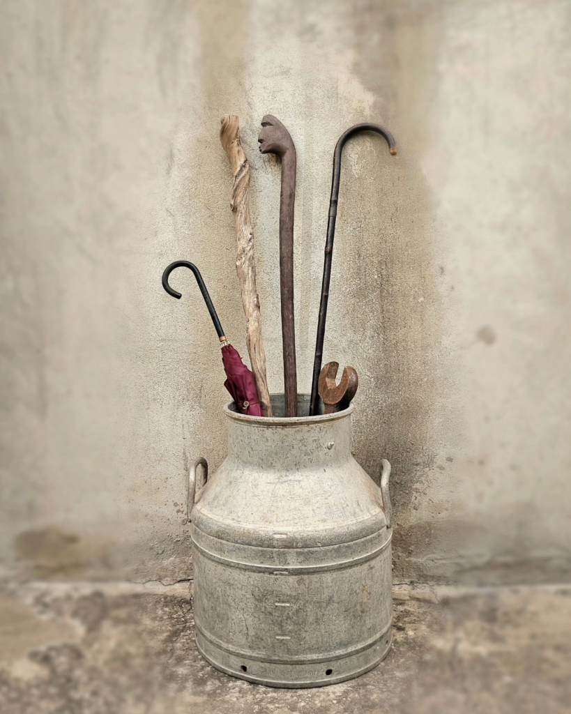 Vintage milk cans can be used in a variety of ways in the garden. You can drill a hole in the bottom and use them as planters.