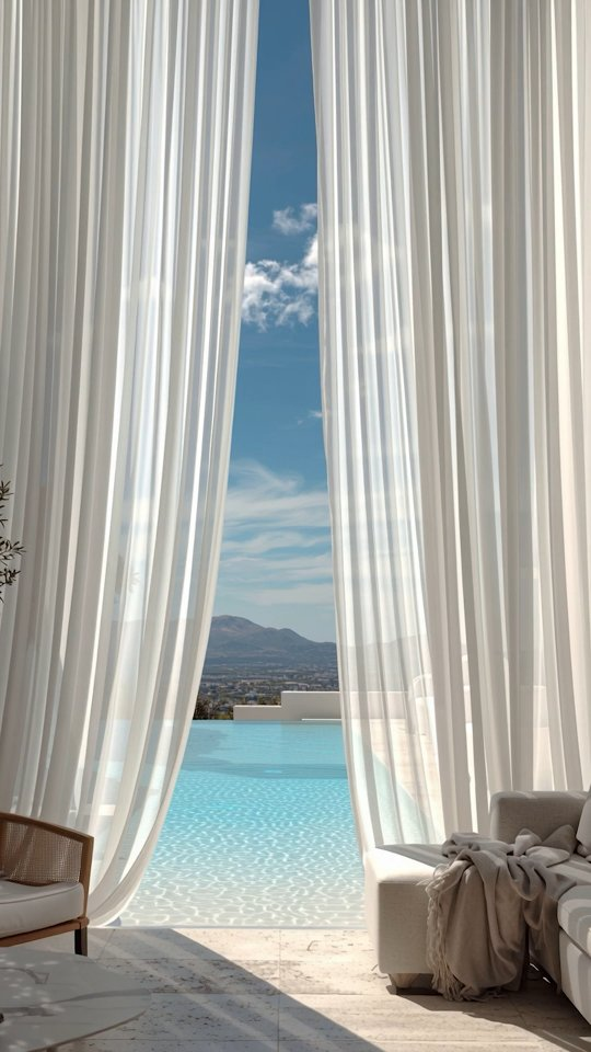 The color and texture are reminiscent of the sea while the light filtering in through the fabric adds a dreamy vibe to the space.