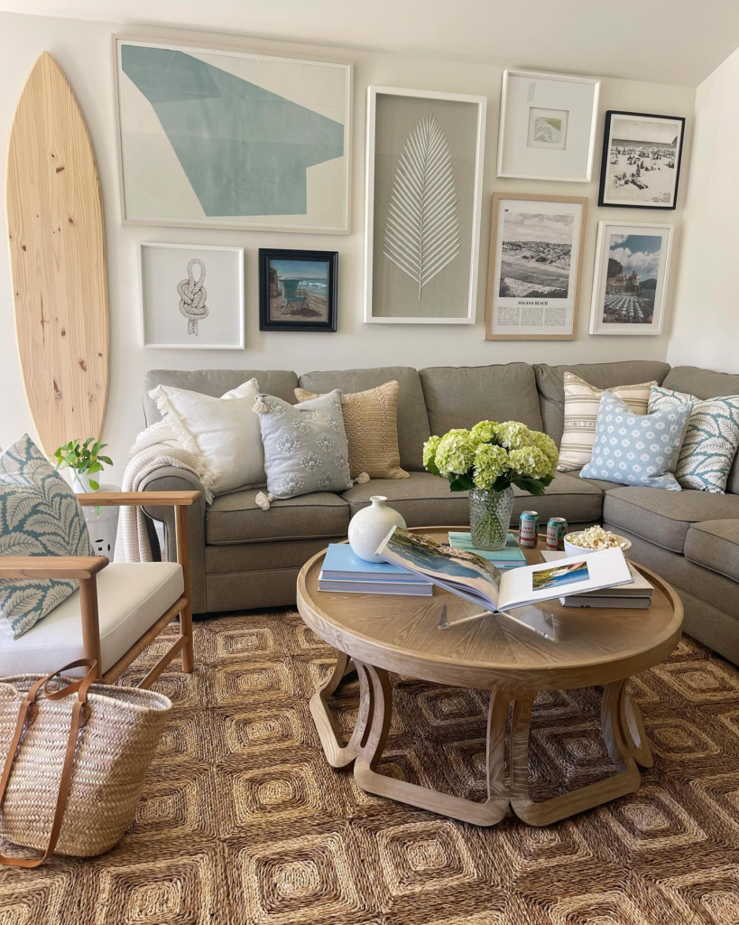 Incorporating a jute rug into your living room is a simple way to bring in some beachy texture.