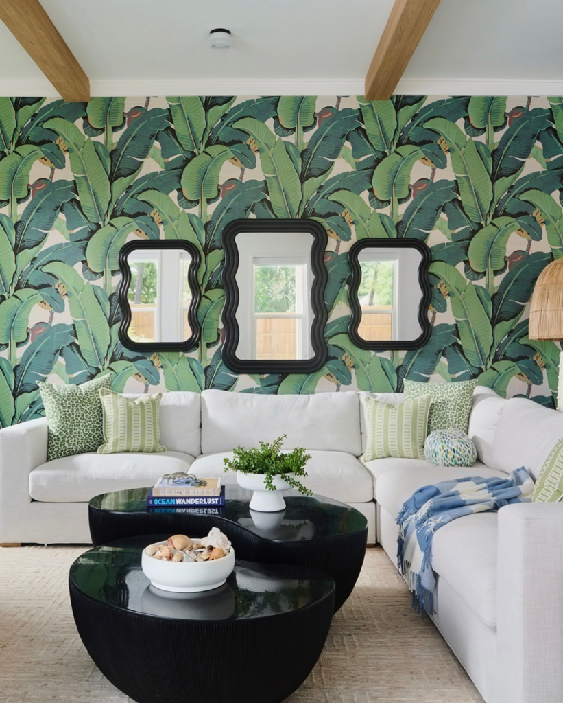 Whether you choose a palm print wallpaper or an accent chair, you can’t go wrong with this classic beachy look.