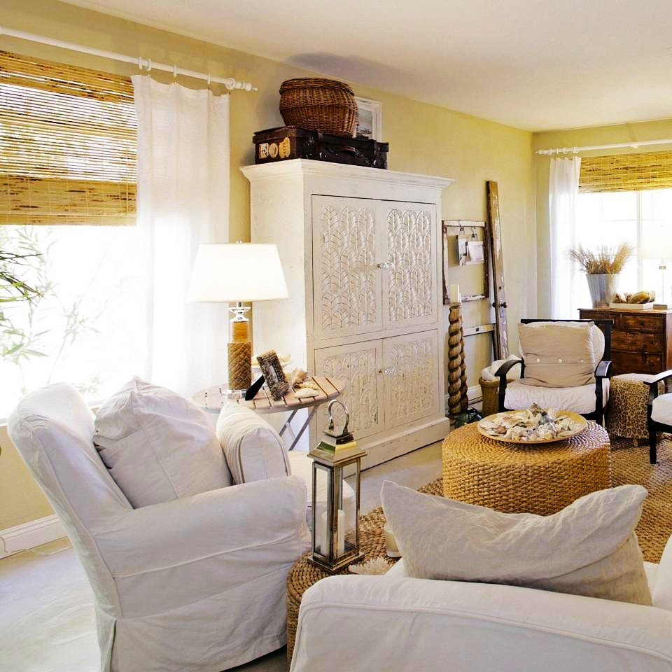 A white slipcovered sofa is a beach living room staple. It’s the perfect place to lounge and adds a casual, breezy vibe to the space.