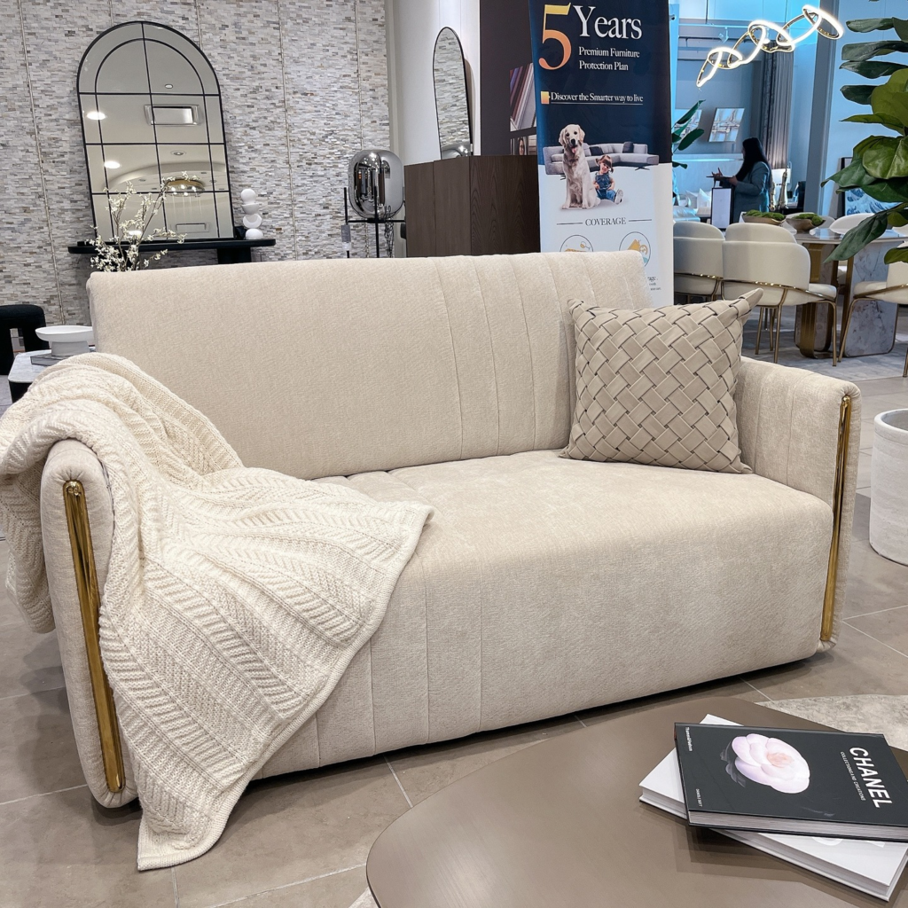 If you’re looking for a more luxurious sofa option, consider a beige velvet sofa.
