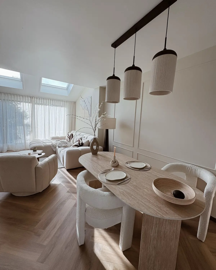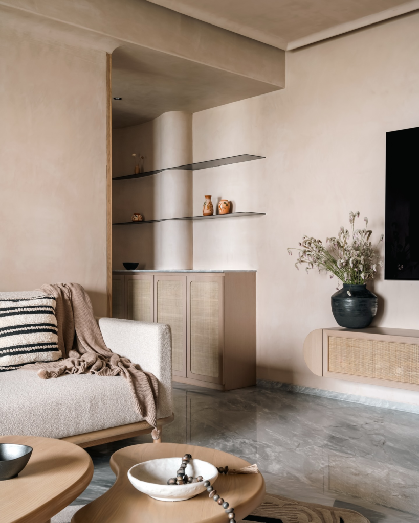 Layering different shades of beige, accompanied by strategic pops of color, keeps the ambiance lively and inviting.