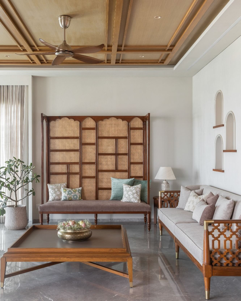 Rattan is a material that can be used in so many different ways to create a variety of looks. In this living room, it’s used to create a boho vibe.