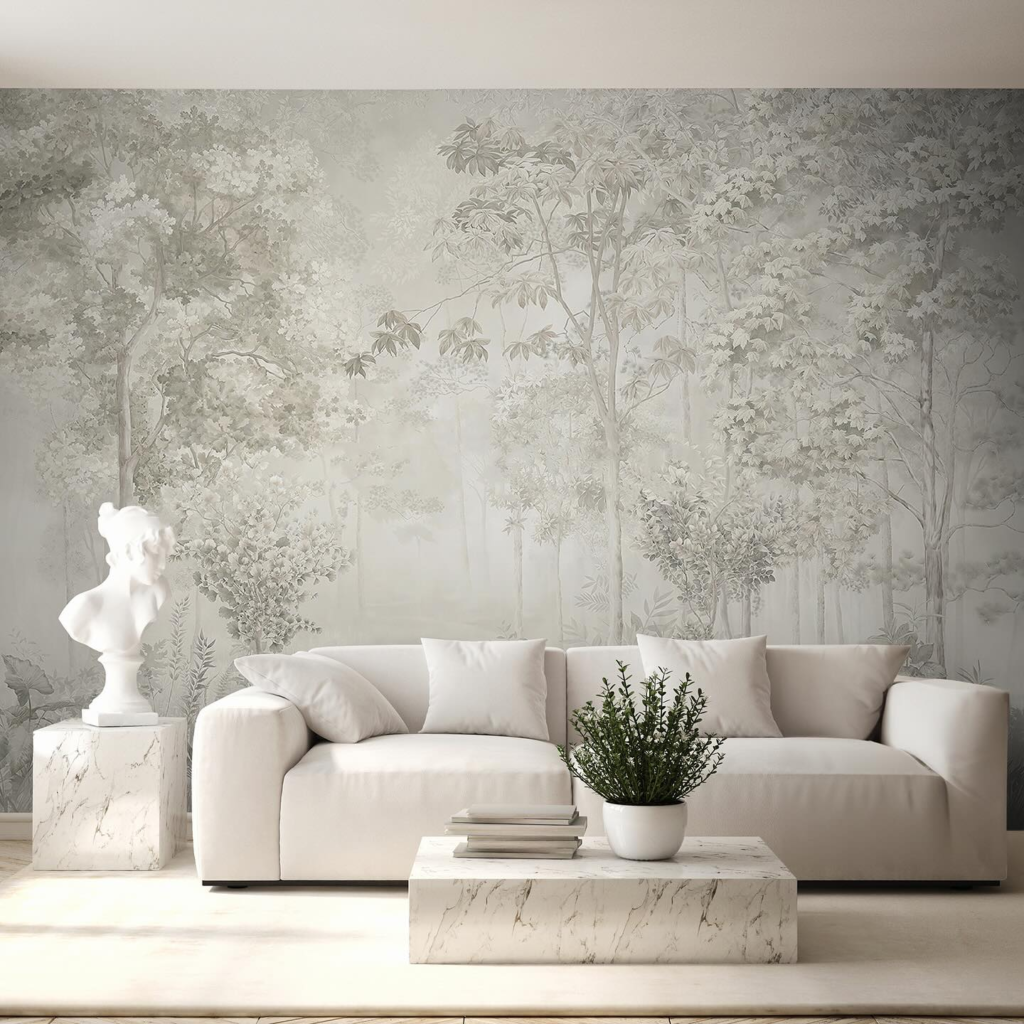 If you love the idea of a beige living room but don’t want to go all in with the color, try adding a bit of beige texture to the walls with a wallpaper like this one.