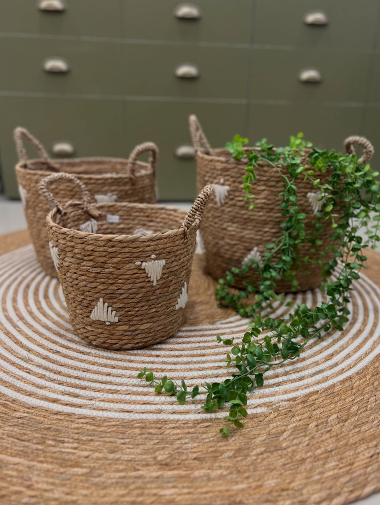 I love how the baskets add a soft, earthy element to the space. You can find similar baskets at World Market.