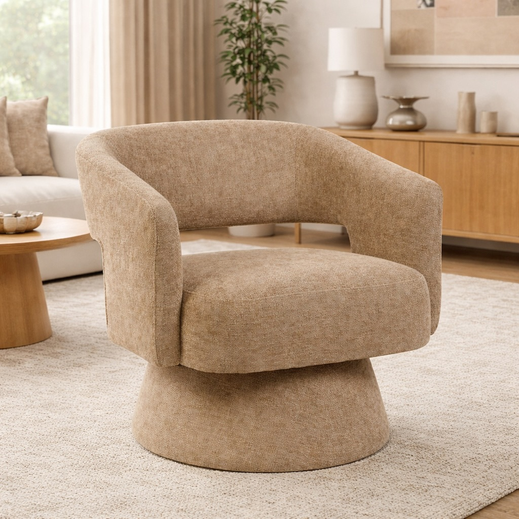 The boucle accent chair is a popular choice for living rooms. The fabric is soft and comfortable, and the neutral color is a great choice for a beige living room.