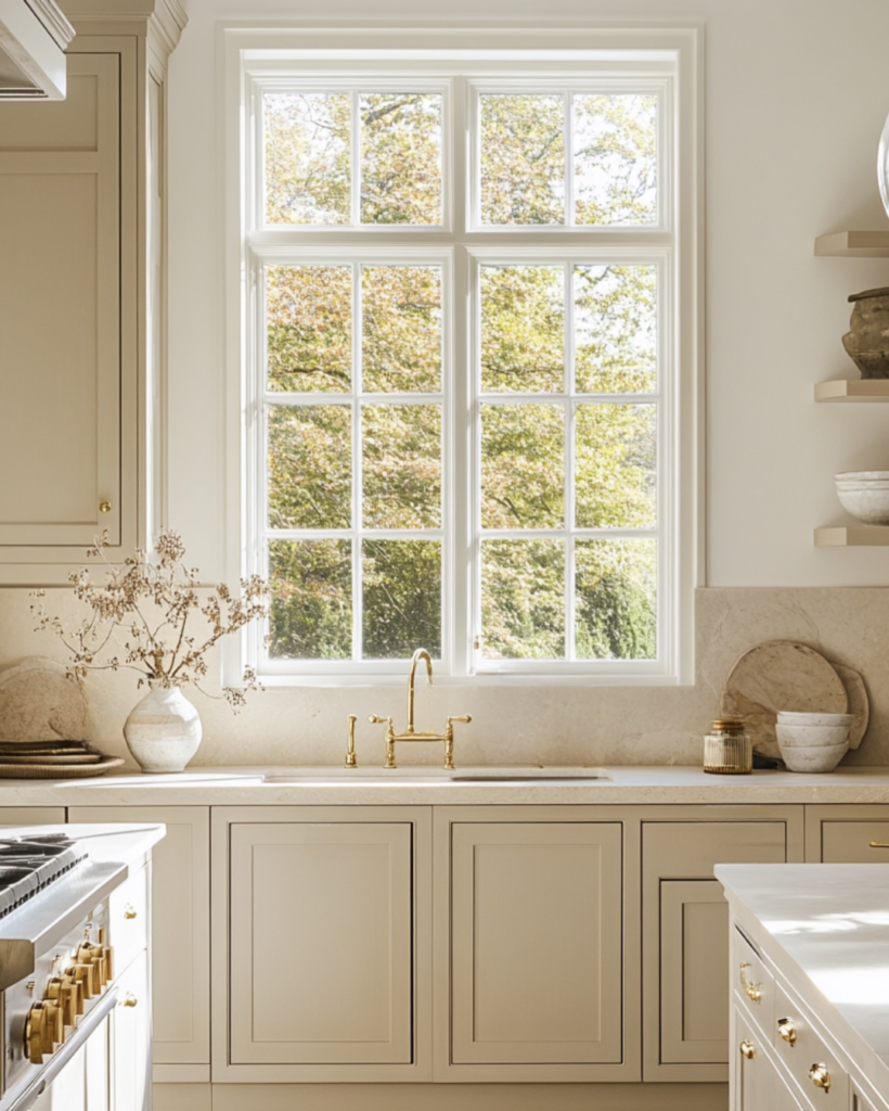 The color is the perfect balance between gray and beige, and it looks stunning with the brass hardware.