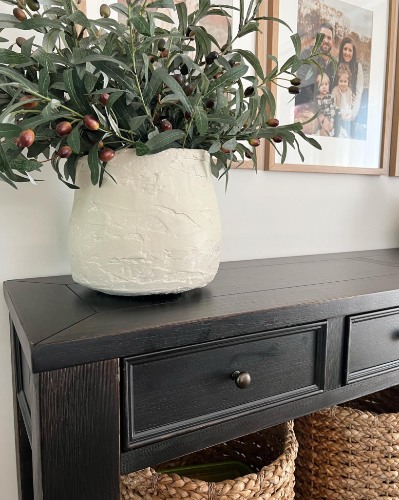 This console table, painted in Charcoal Slate by Magnolia Home, is the perfect base for a modern, elegant display.