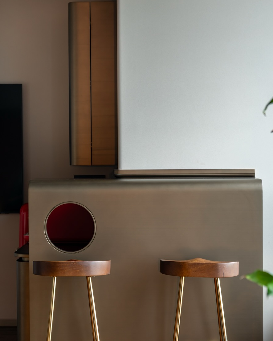 Add a pop of color to your kitchen with a terracotta stool! The color is warm and inviting, and it pairs well with a variety of other colors.