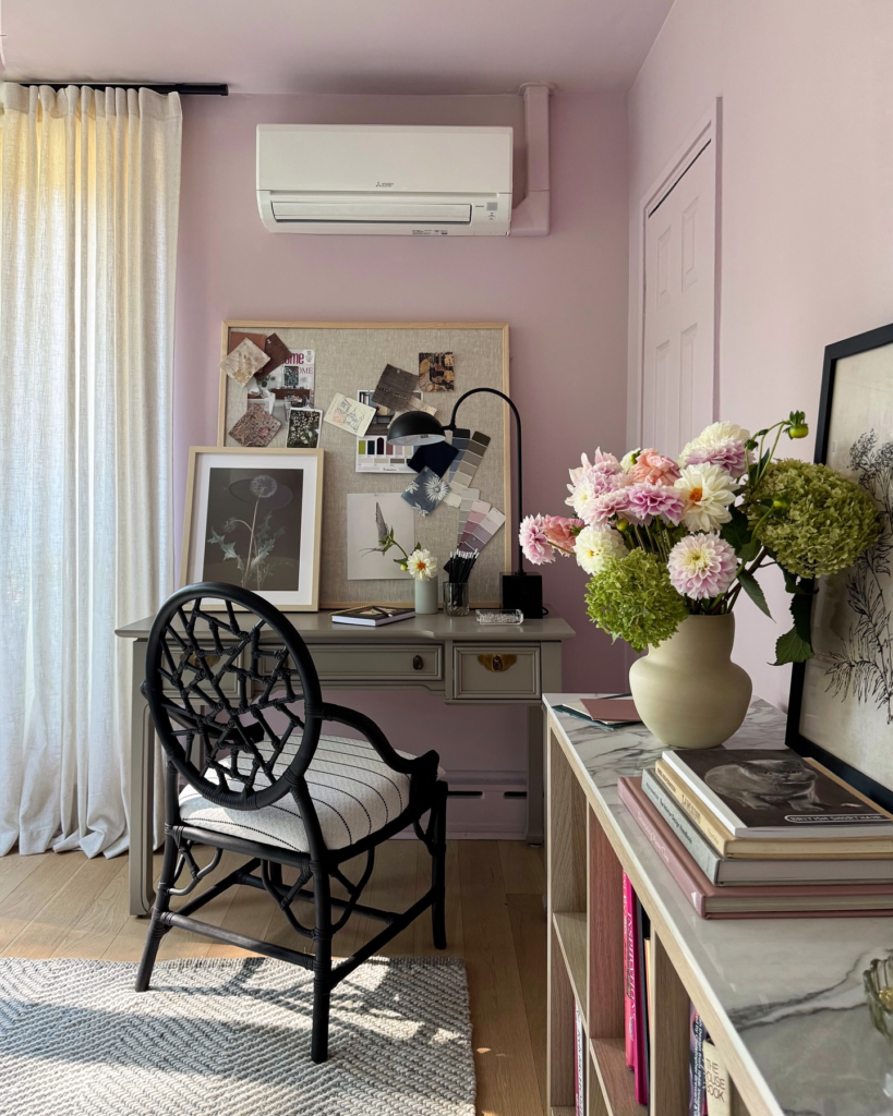 The sand beige color is so calming and complements the other colors in the room so well. If you can’t find a piece of furniture in the color you want, make it yourself!