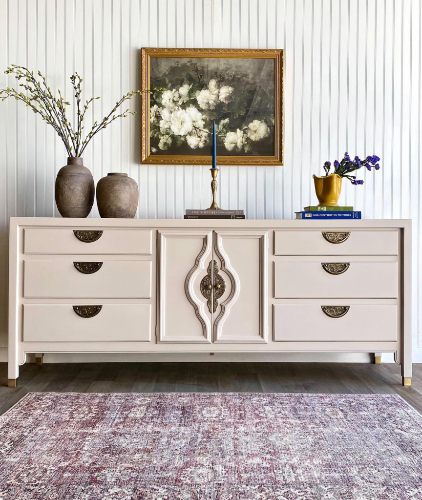 The neutral tone will work with any color scheme, so don’t be afraid to mix it with other pieces of painted furniture in different colors.