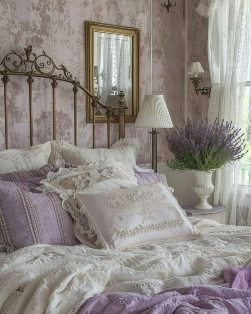 This is a great way to achieve an attractive interior with better light reflection. Lilac looks amazing when applied in contrast with off-white furniture.