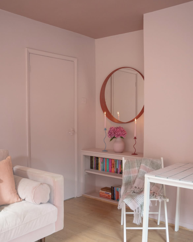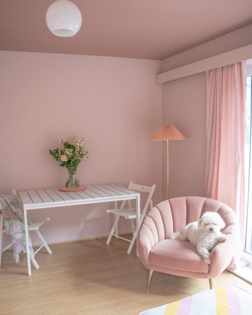 You can have the ceiling in contrast by having walls in pink or vice versa.
