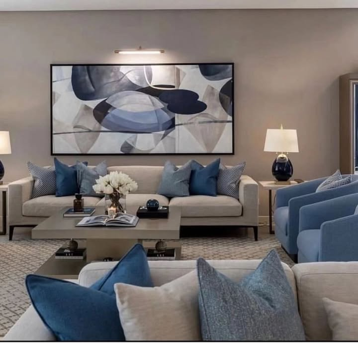 Try blue grey for its elegance, and pair it with contrasting tones such as cream, emerald green, beige, or any other subtle choice.
