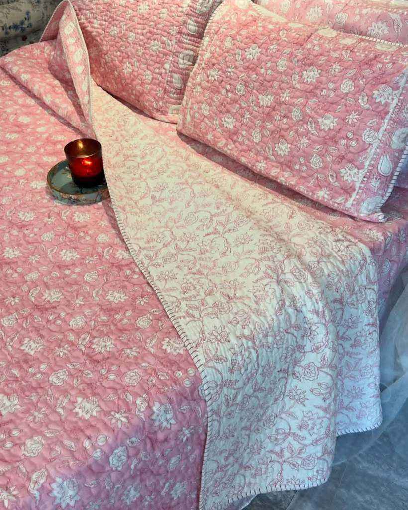 Layered blush bedding