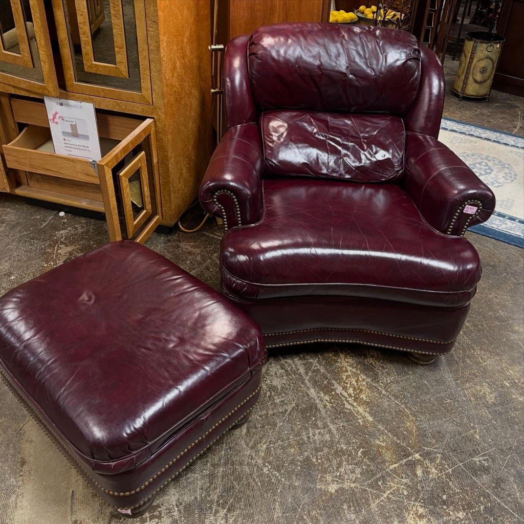 Burgundy leather ottoman