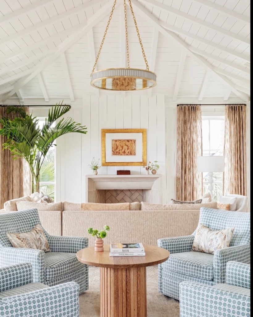 A set of light wood beams running across the ceiling is a subtle way to bring a touch of coastal style to a room.