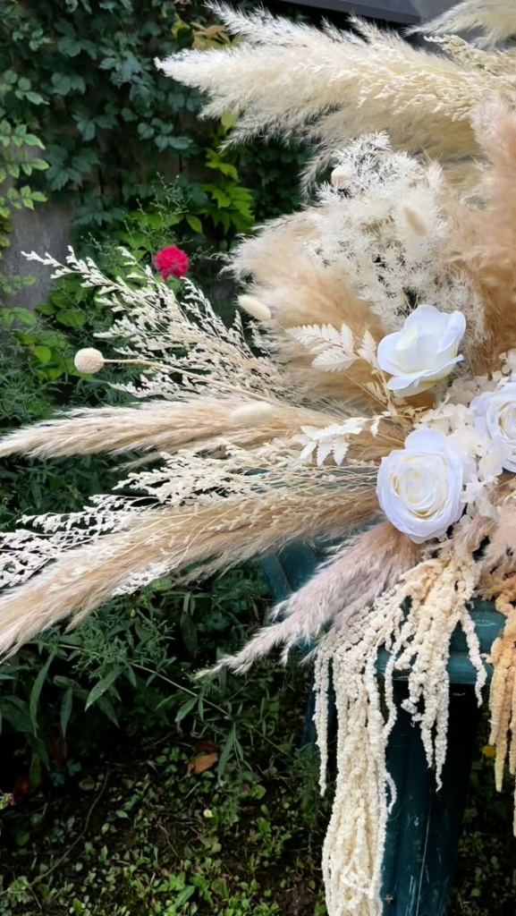 Glass vases filled with dried pampas and grasses
