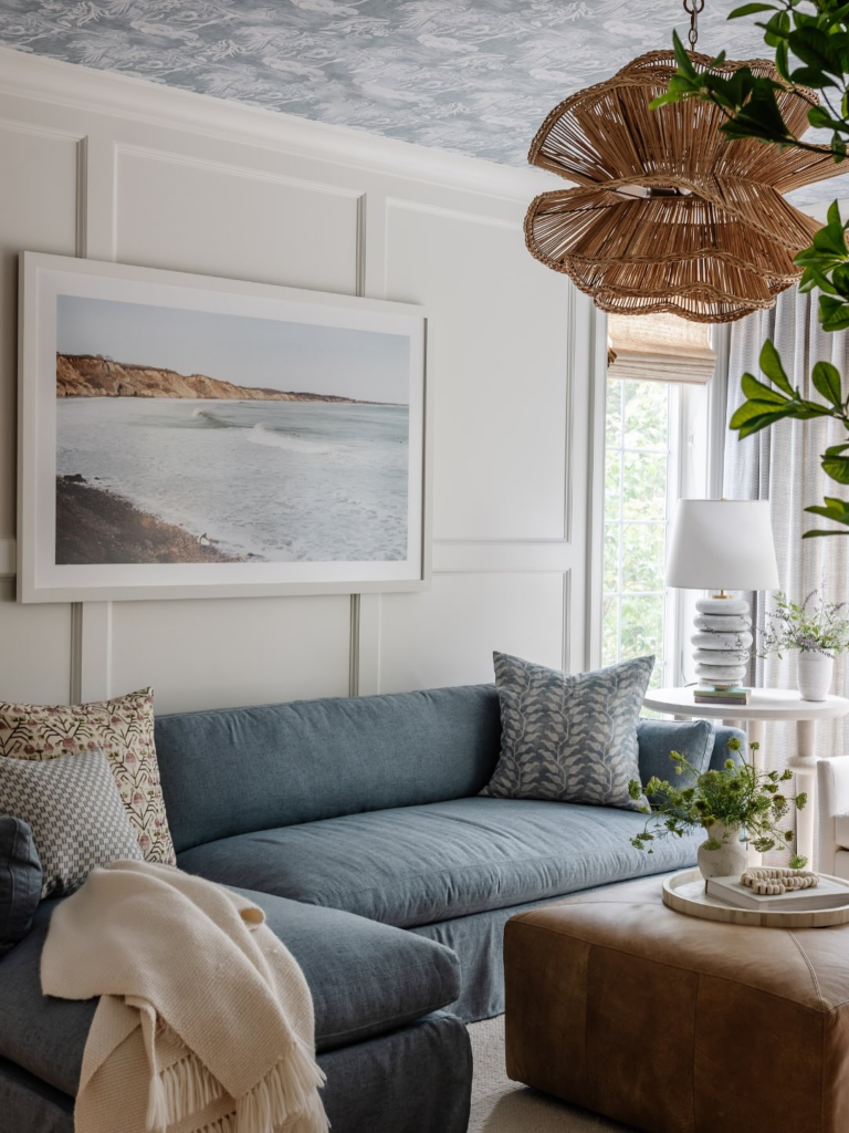 This living room is a beautiful example of how to bring in a beachy vibe without being too on-the-nose.
