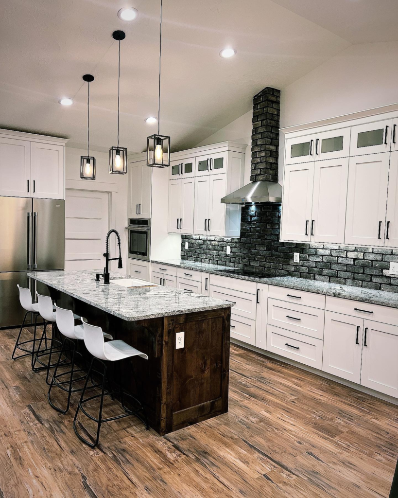 When you do not want to have a single color scheme for the interior, pick a contrasting countertop.