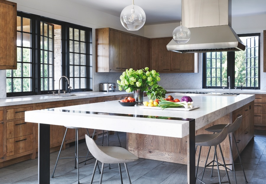 You can have granite or marble kitchen countertops, while a wooden counter for the kitchen island maintains the craftsmanship.
