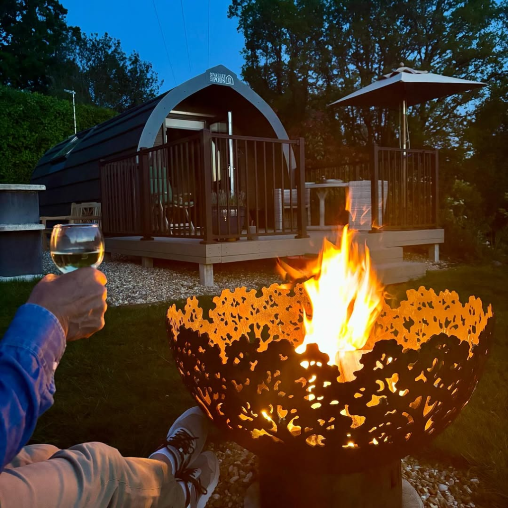 You can enjoy the sights and sounds of the woods around you while staying warm by the fire.