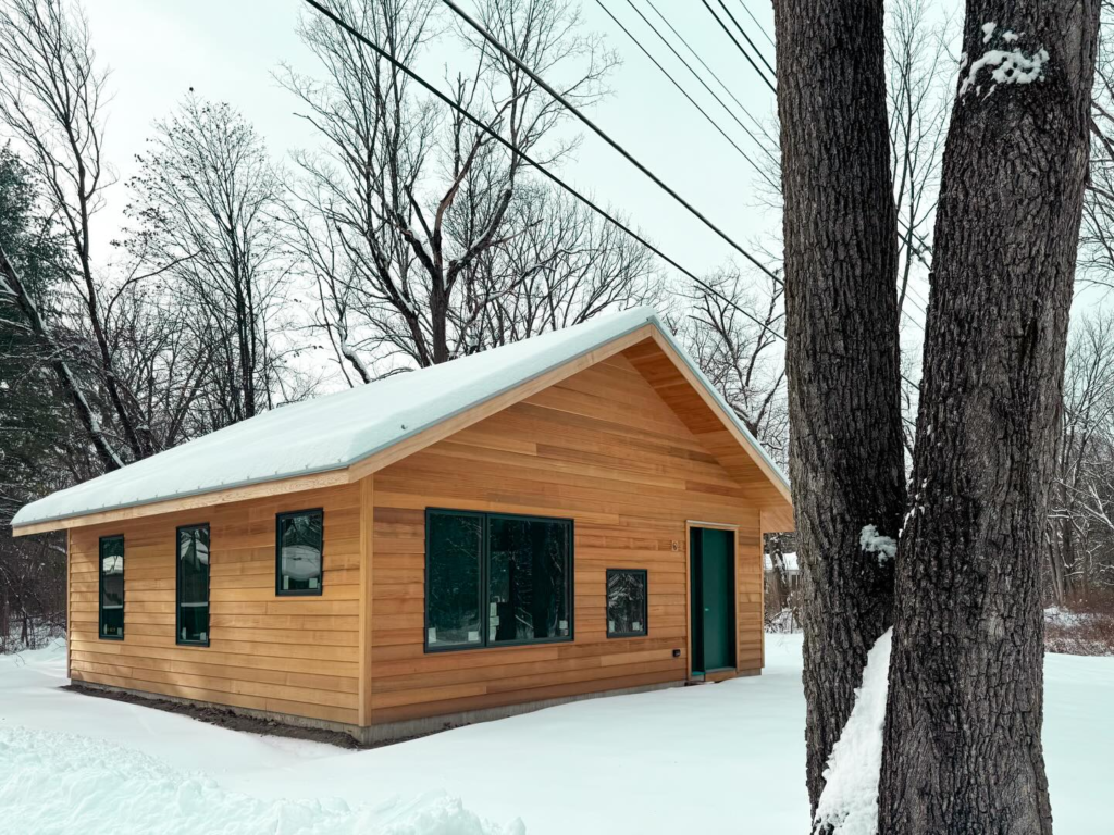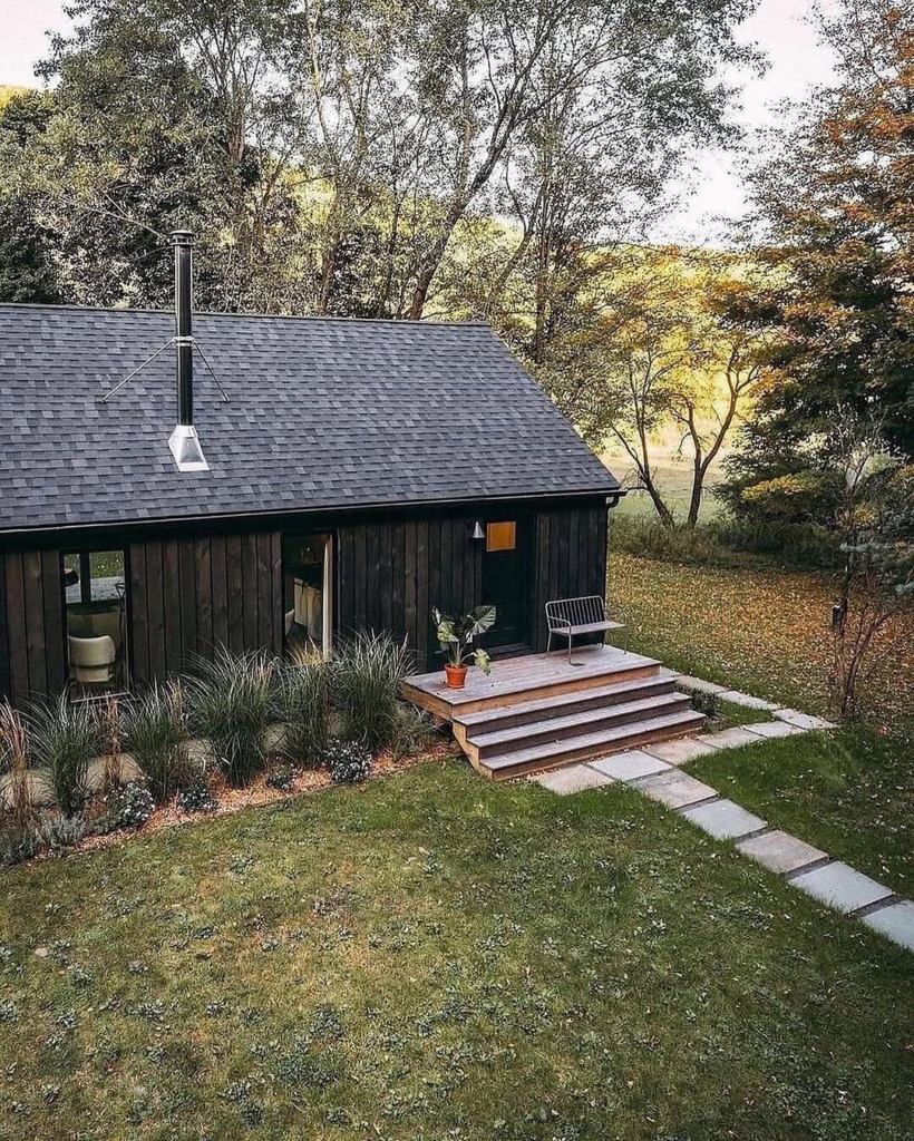 The dark wood exterior is also a great way to make the home feel modern and sleek, while still being cozy and inviting.