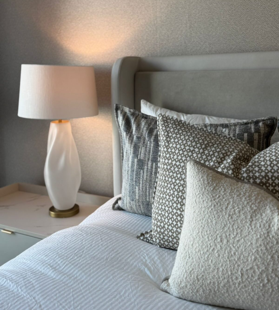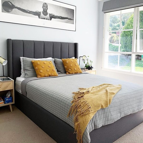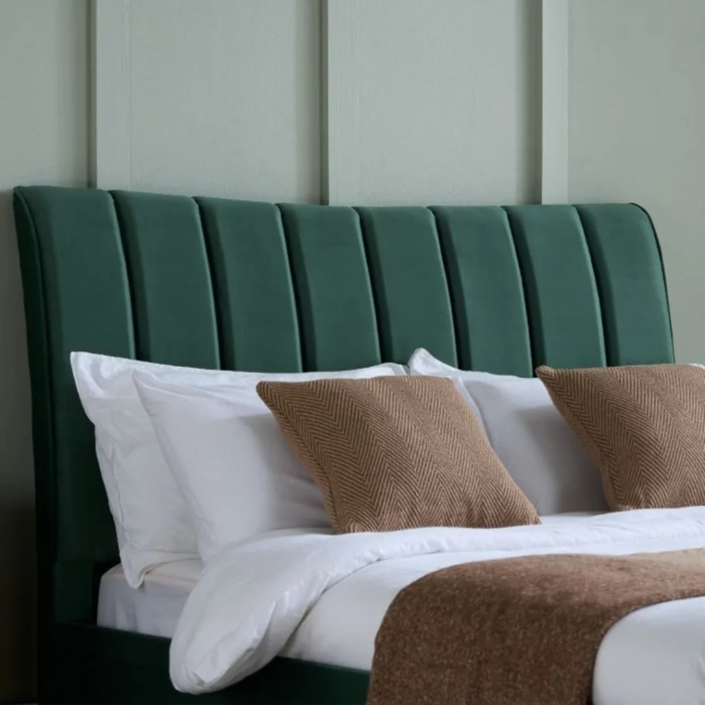 A plush velvet headboard is a great way to add comfort and texture to your bedroom.
