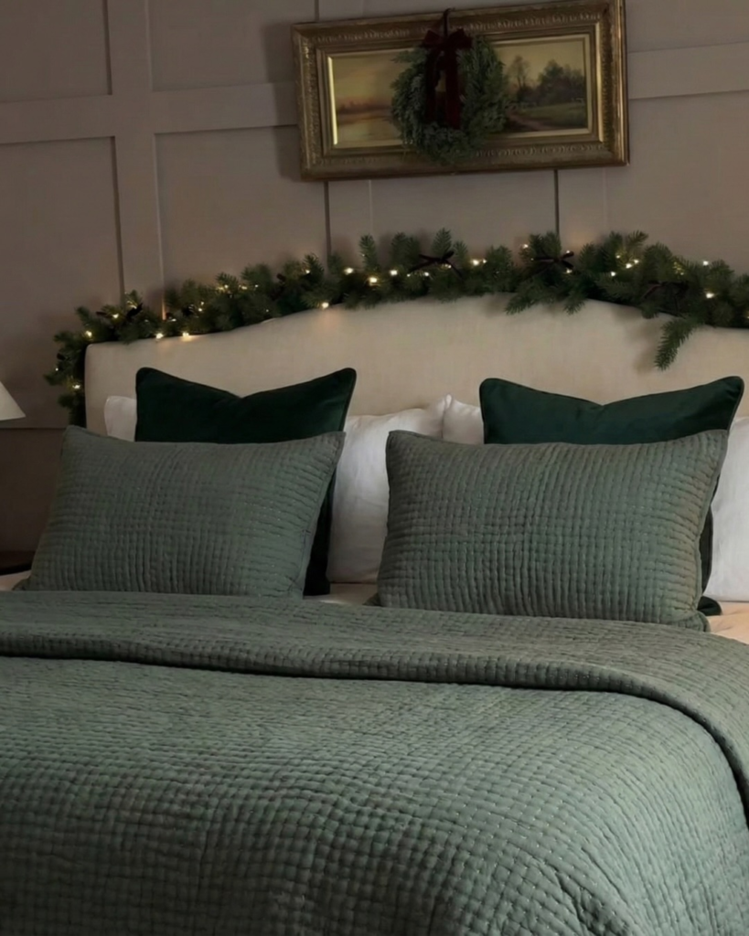 If you don’t want to go overboard with green, you can mix in some white pillows or gray pillows.