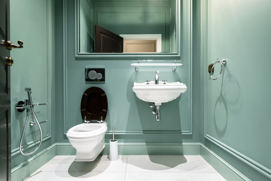 You can never go wrong with the classic green-and-white combo. It’s clean, timeless, and makes small bathrooms look more spacious.