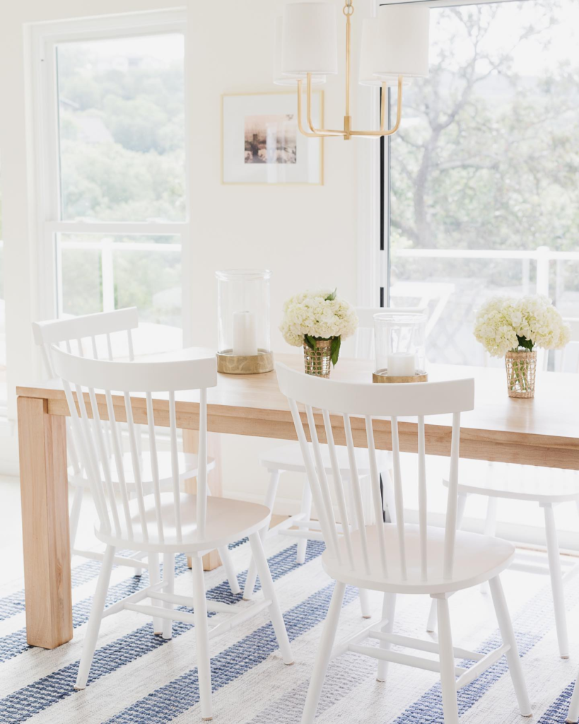 Have a wooden dining table or a rug under the table in some contrasting colors to add warmth
