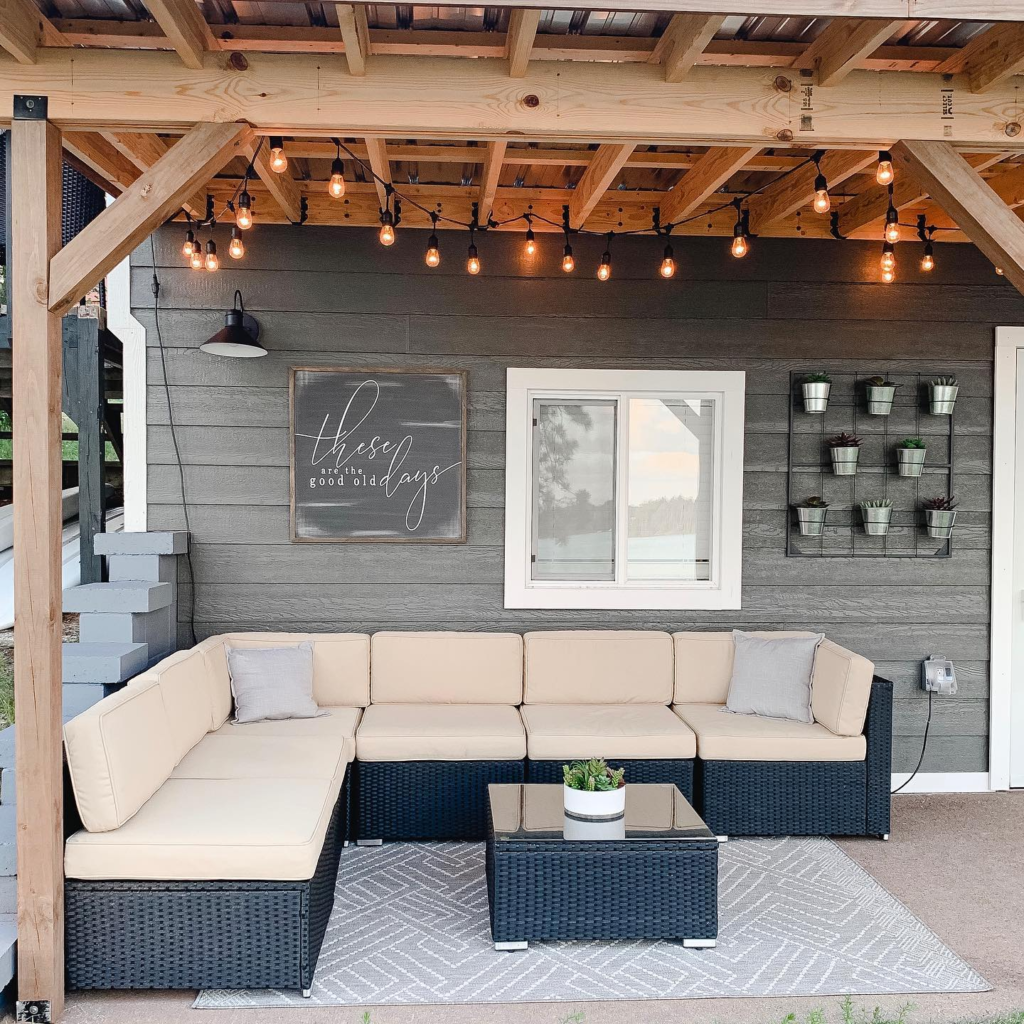 A covered patio with a pergola overhead is my top favorite as it balances direct sunlight while giving enough air and soothing light.