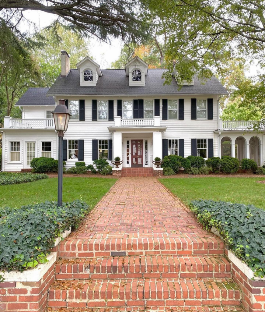 Walkways leading through the garden to the house come in various materials, but to keep it an authentic vintage-inspired home, have red brick walkways.