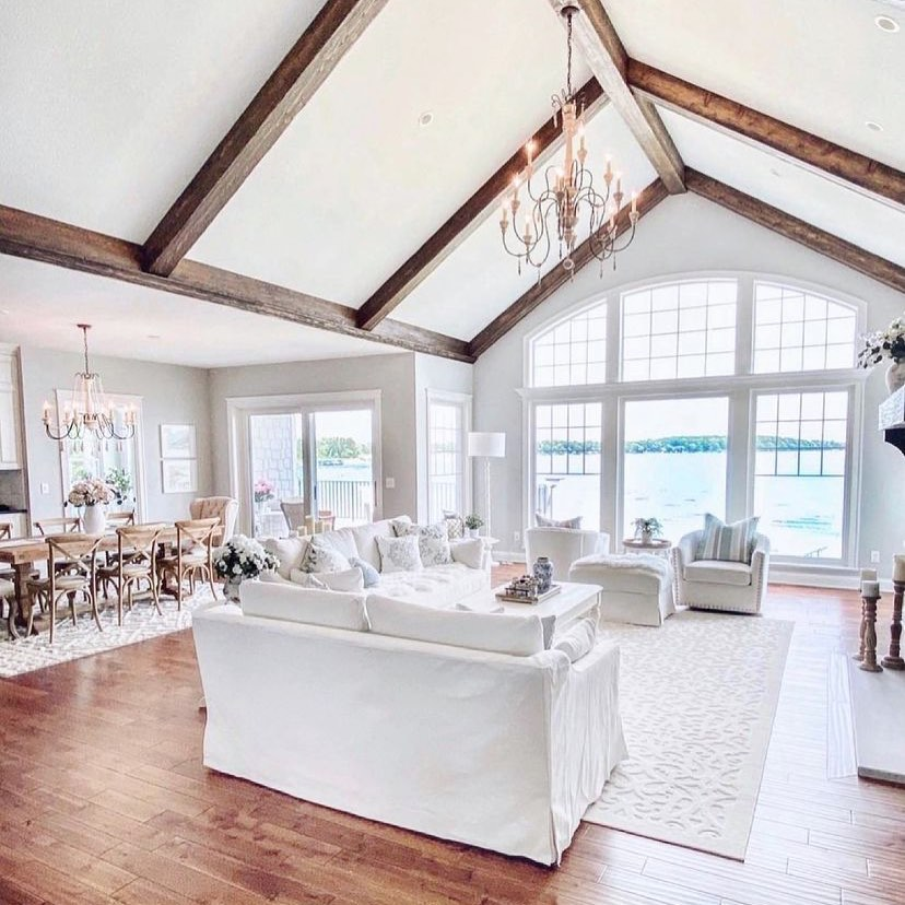 In a lake house where you get a serene atmosphere, keep the walls and the furniture in white or cream color.