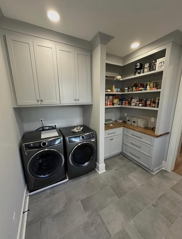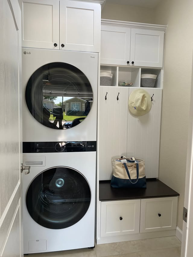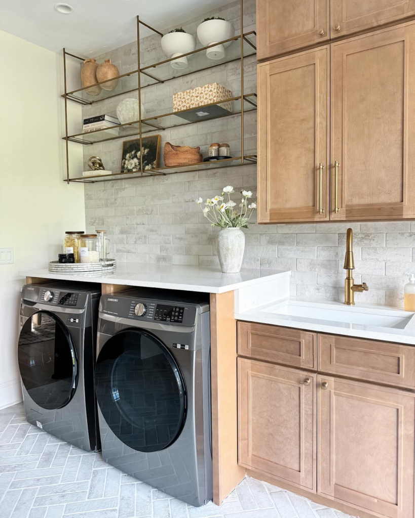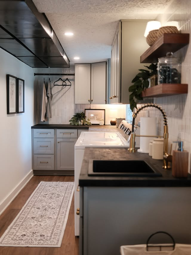 Laundry Room with Open Shelving Nook