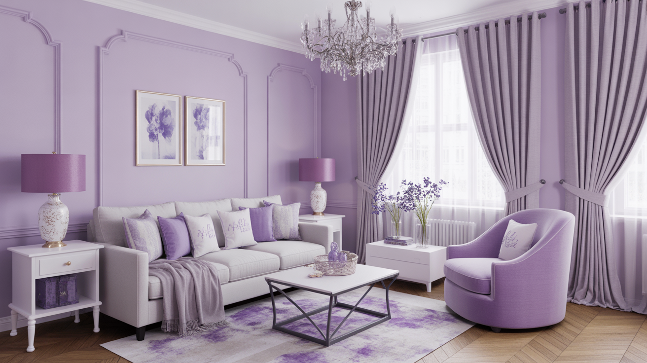 - Limit lavender to 30–40% of the overall scheme so it doesn’t overpower the white.
