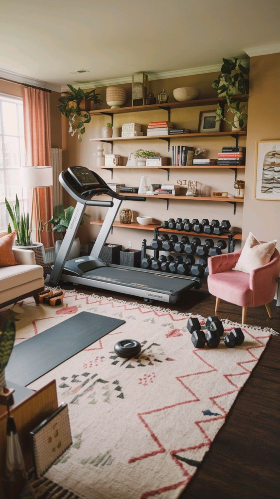 If you are someone who likes aesthetics, then you can design a mini gym that looks good and stays visible.