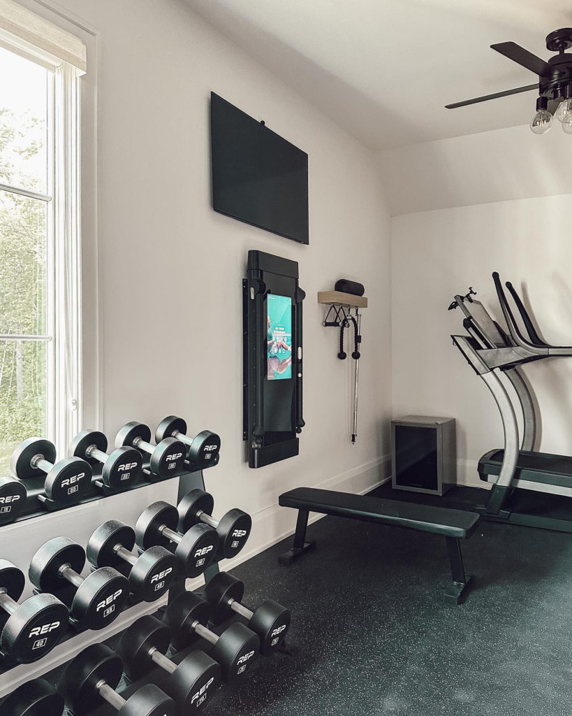 Using a smart gym with tech integrations can enhance your workout activity. You can add a tablet mount or a small tv to stream your workout classes there.