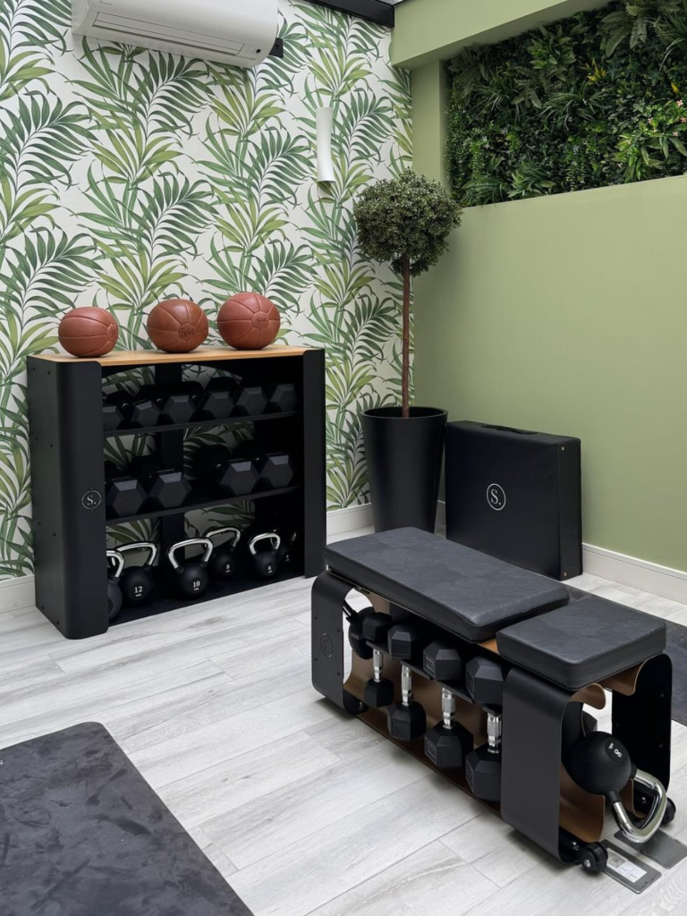 One of my favourite ideas to create a mini gym at home is by using a corner gym setup.
