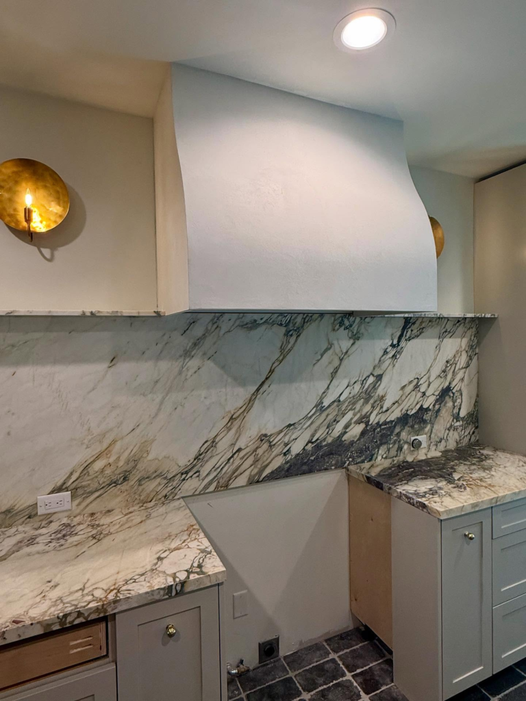 Veined marble backsplash