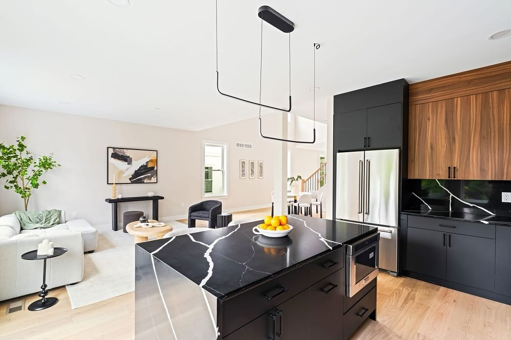 From waterfall islands and veined backsplashes to integrated sinks and backlit walls, the versatility of black marble can elevate any space, creating a luxurious atmosphere.