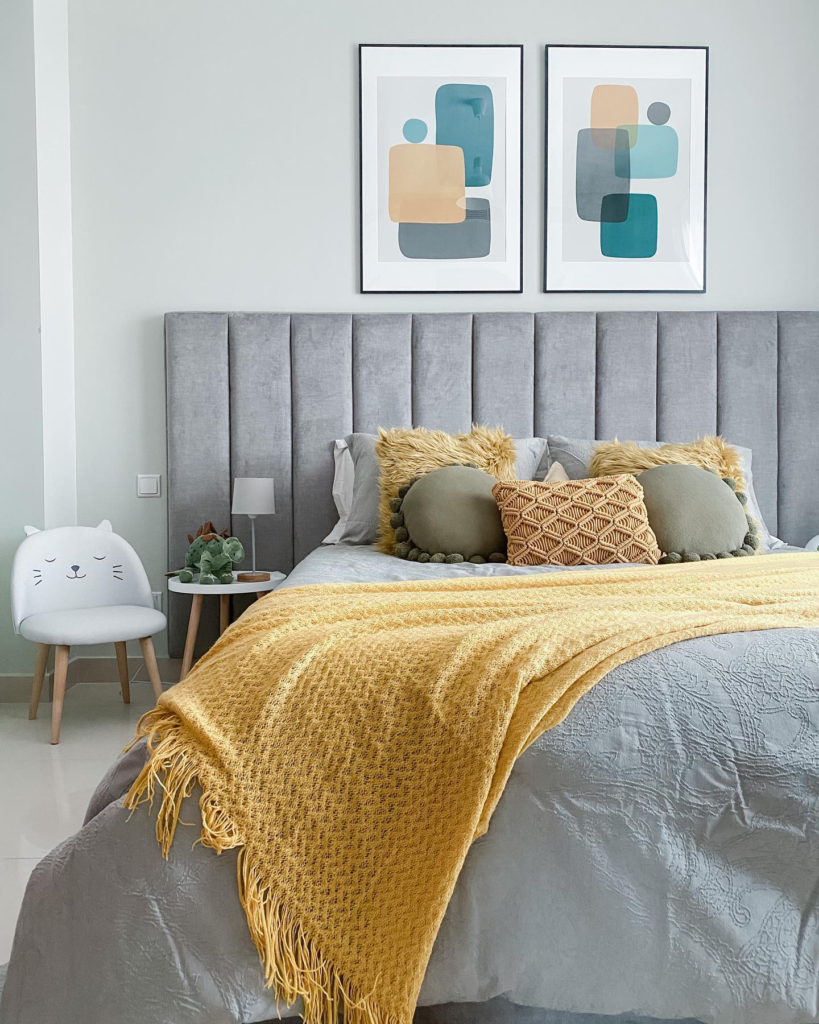If you love to mix-and-match your bedding, then a gray and mustard color scheme is perfect for you.