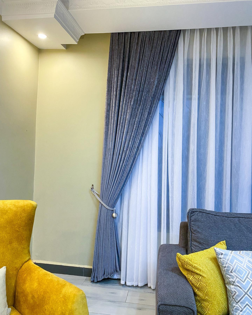 If you have a window in your bedroom, you can use curtains to add a pop of color to your space. Mustard curtains look great with a gray color scheme.
