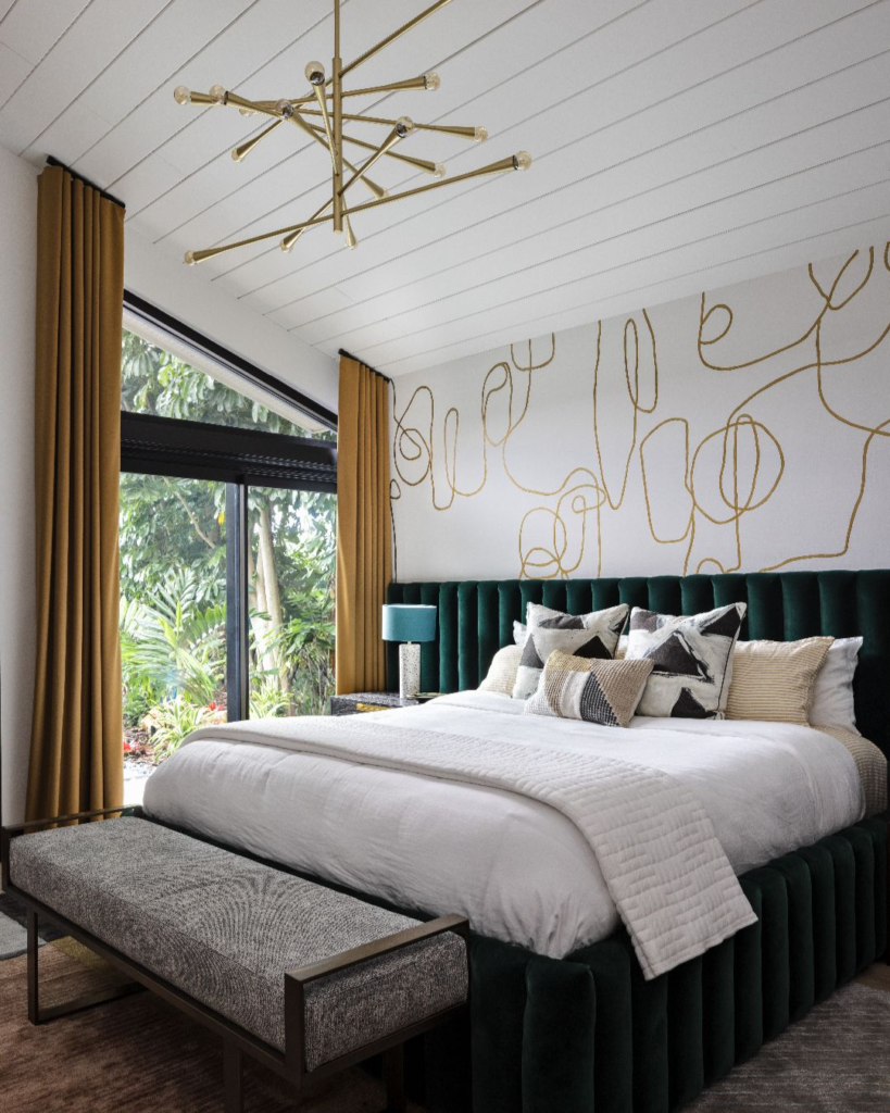 Choose a chair with a fun pattern or pick a solid color that you love and use that chair as your jumping-off point for your bedroom decor.