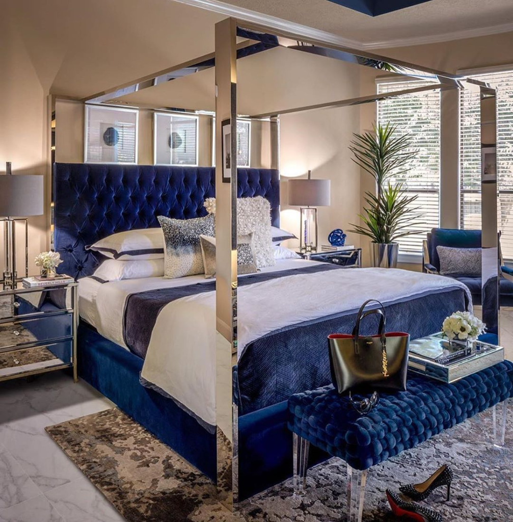 Silver is a great accent color to pair with royal blue if you’re looking to add a little bling to your bedroom.