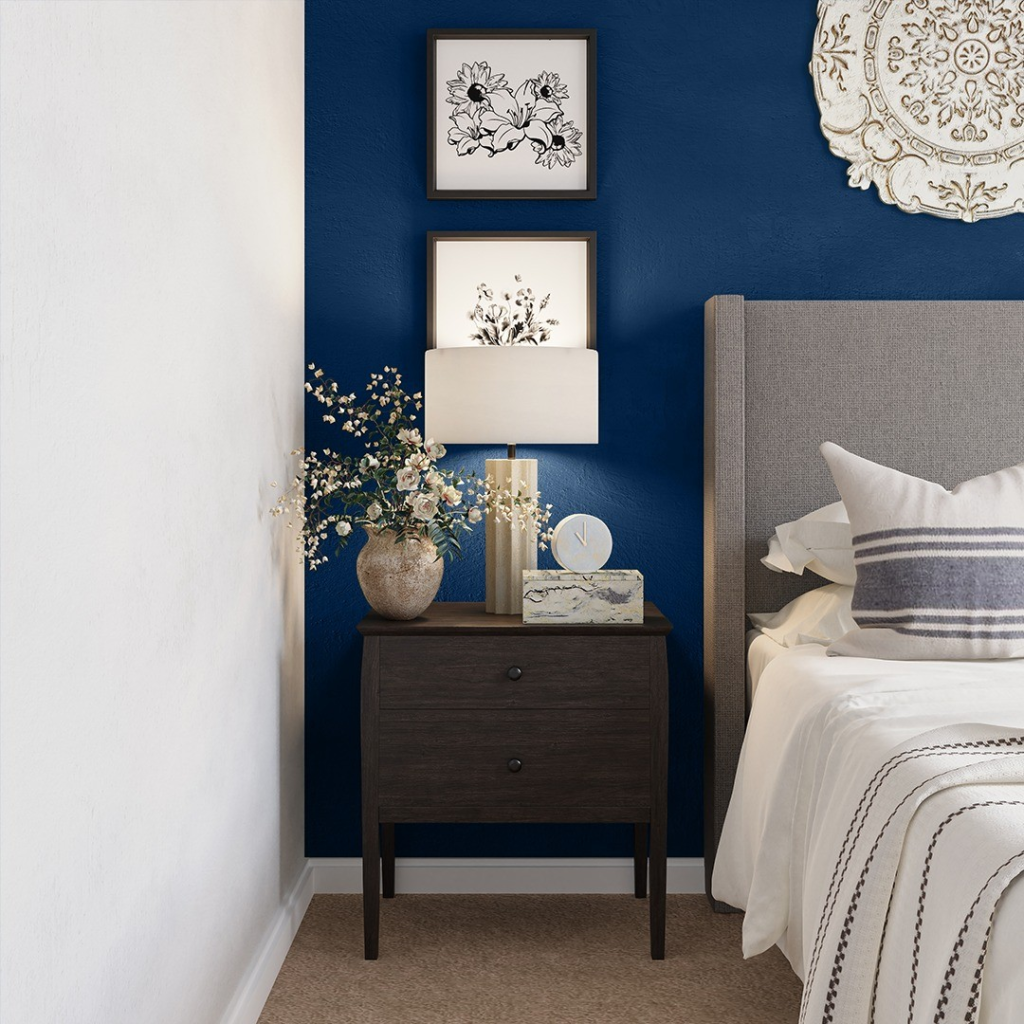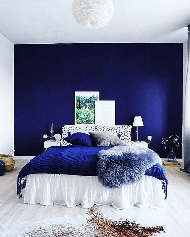If you’re not ready to fully commit to a royal blue bedroom, consider painting just one wall.